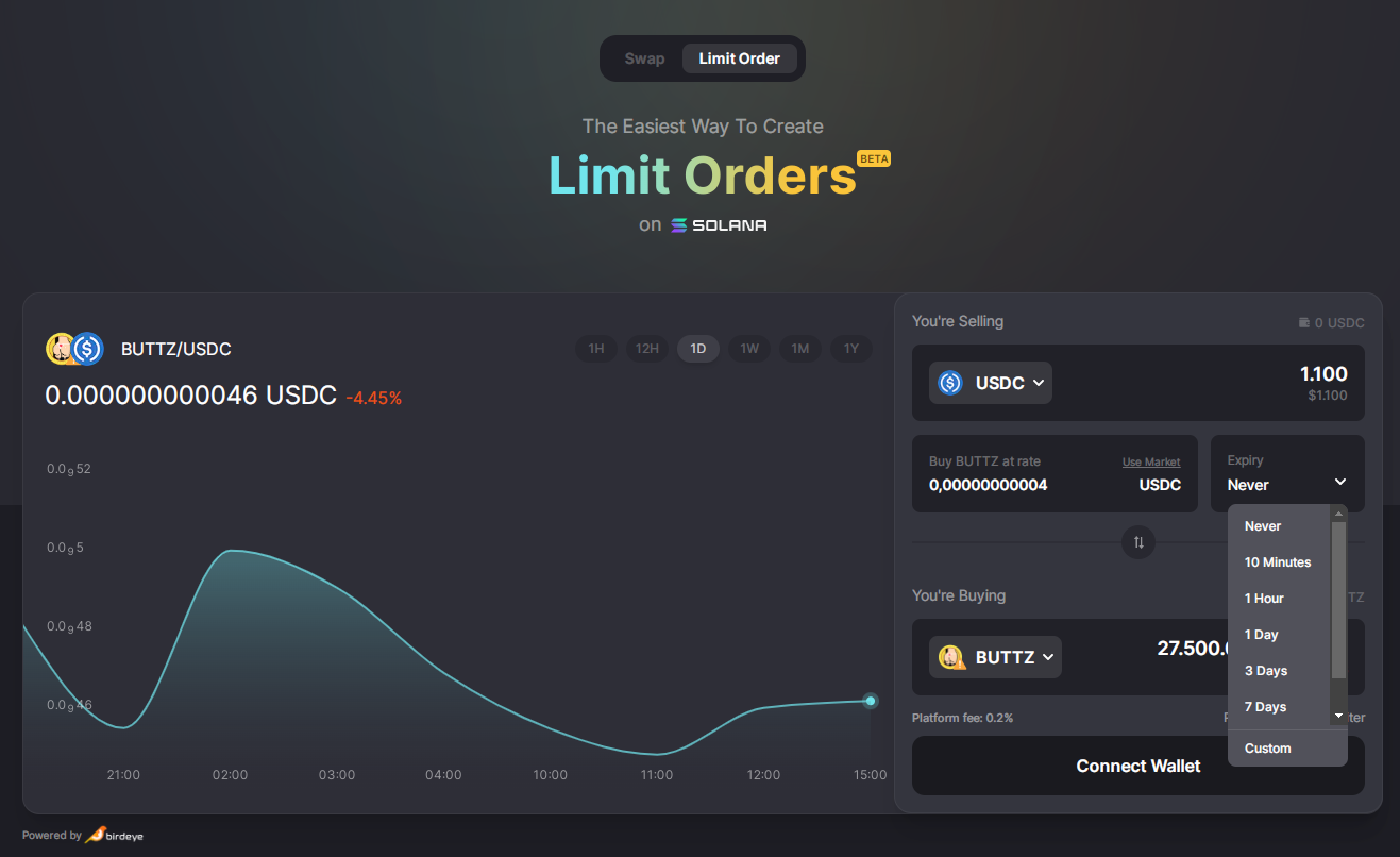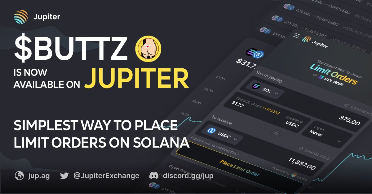 1 - Visit <https://jup.ag/limit/SOL-BUTTZ_ButtzRVXEyHU8oxQmrUEpcTyE7qR9zGtyr43AVkYnuKK>